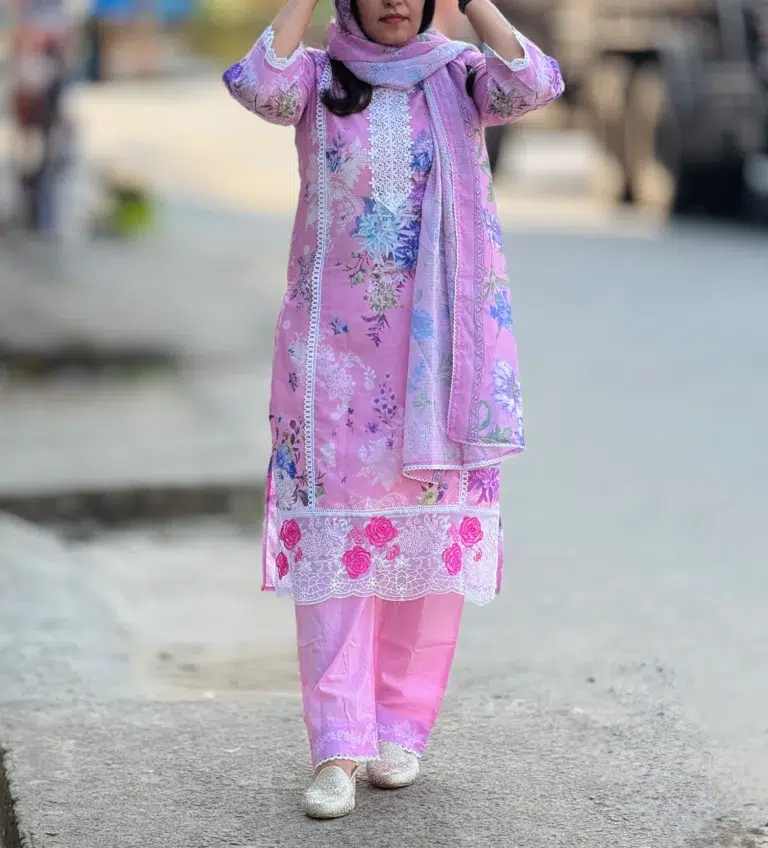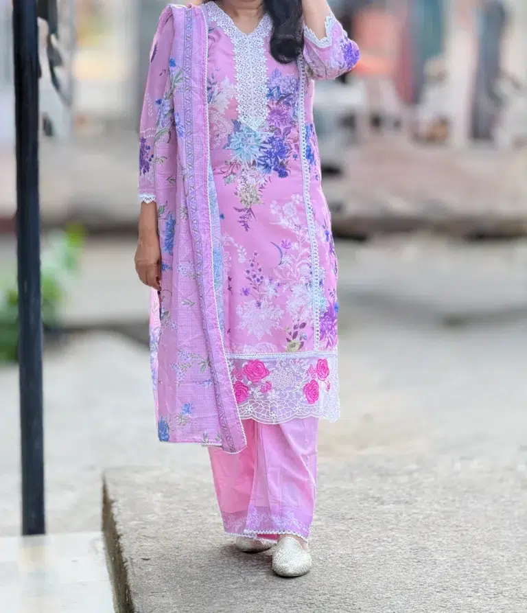 PREMIUM BLUE COTTON DESIGNER SUIT SET