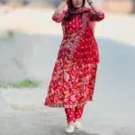 PREMIUM RED COTTON DESIGNER SUIT SET